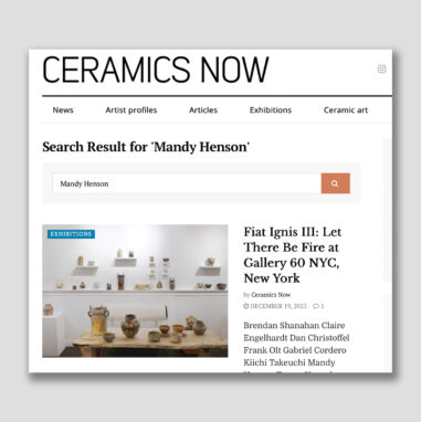 CERAMICS NOW magazine features current show with Mandy Henson